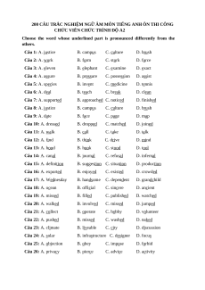 200 CÂU TRẮC NGHIỆM NGỮ ÂM MÔN TIẾNG ANH ÔN THI CÔNG
