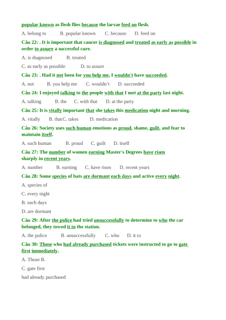s sure a successful cure. A. is diagnosed B. treated C. as early as possible D. to assure Câu 23: . Had it n