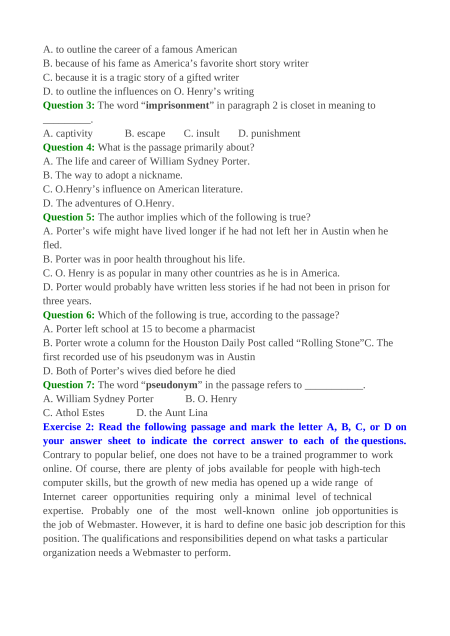 Exercise 2: Read the following passage and mark the letter A, B, C, or D on