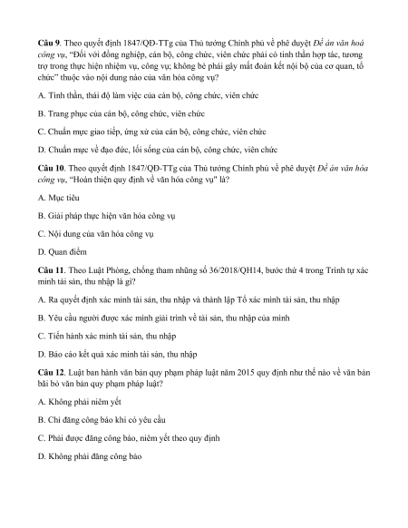 công vụ, “Hoàn thiện quy định về văn hóa công vụ" là? A. Mục tiêu