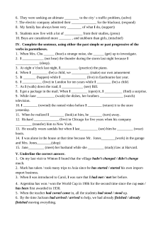 IV. Complete the sentence, using either the past simple or past progressive of the