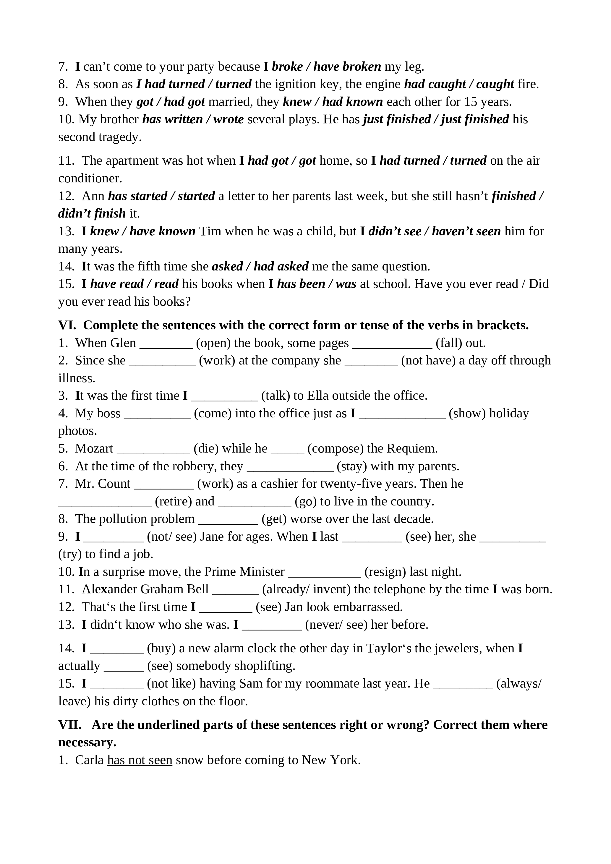 VI. Complete the sentences with the correct form or tense of the verbs in brackets.