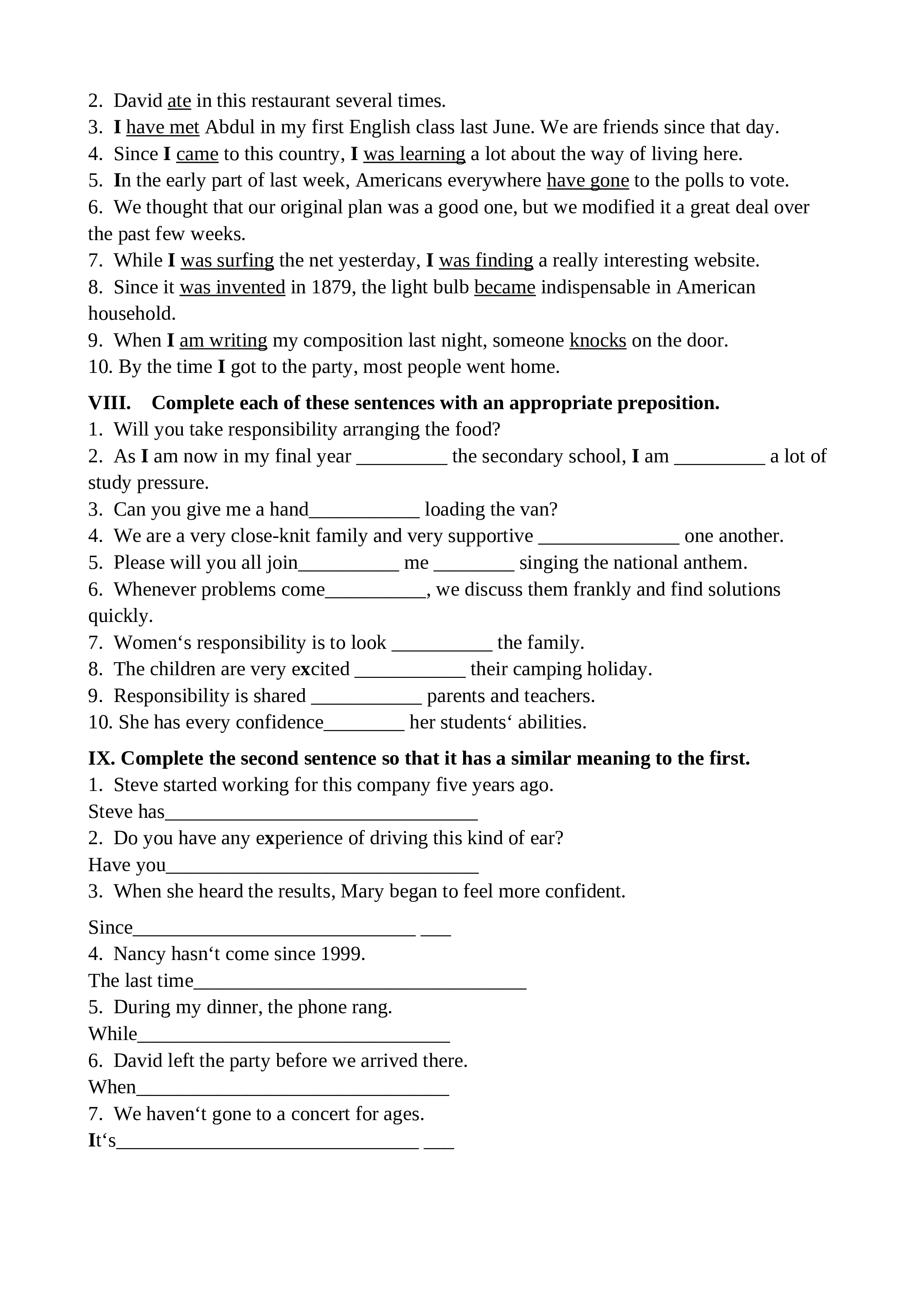 VII. Are the underlined parts of these sentences right or wrong? Correct them where necessary.