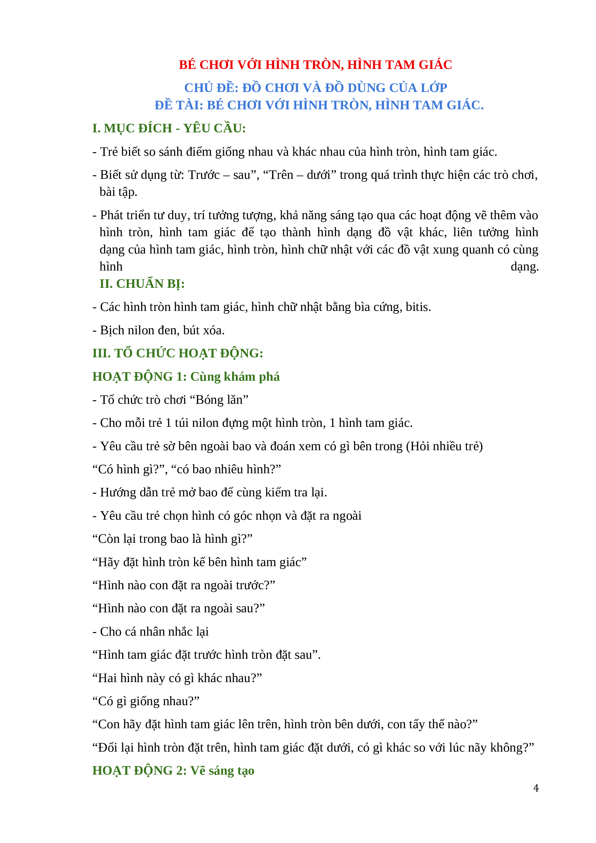 BÉ CHƠI VỚI HÌNH TRÒN, HÌNH TAM GIÁC.........................................................4