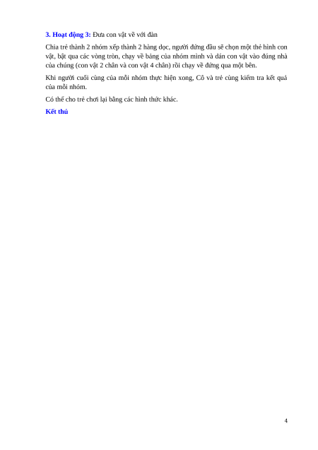 - Hình thành biểu tượng về số lượng đếm, kỹ năng đếm đến 4 và nhận biết chữ số 4.