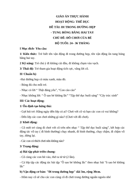 (Ôn thi Viên chức Mầm non) Giáo án Thực hành Hoạt động thể dục
