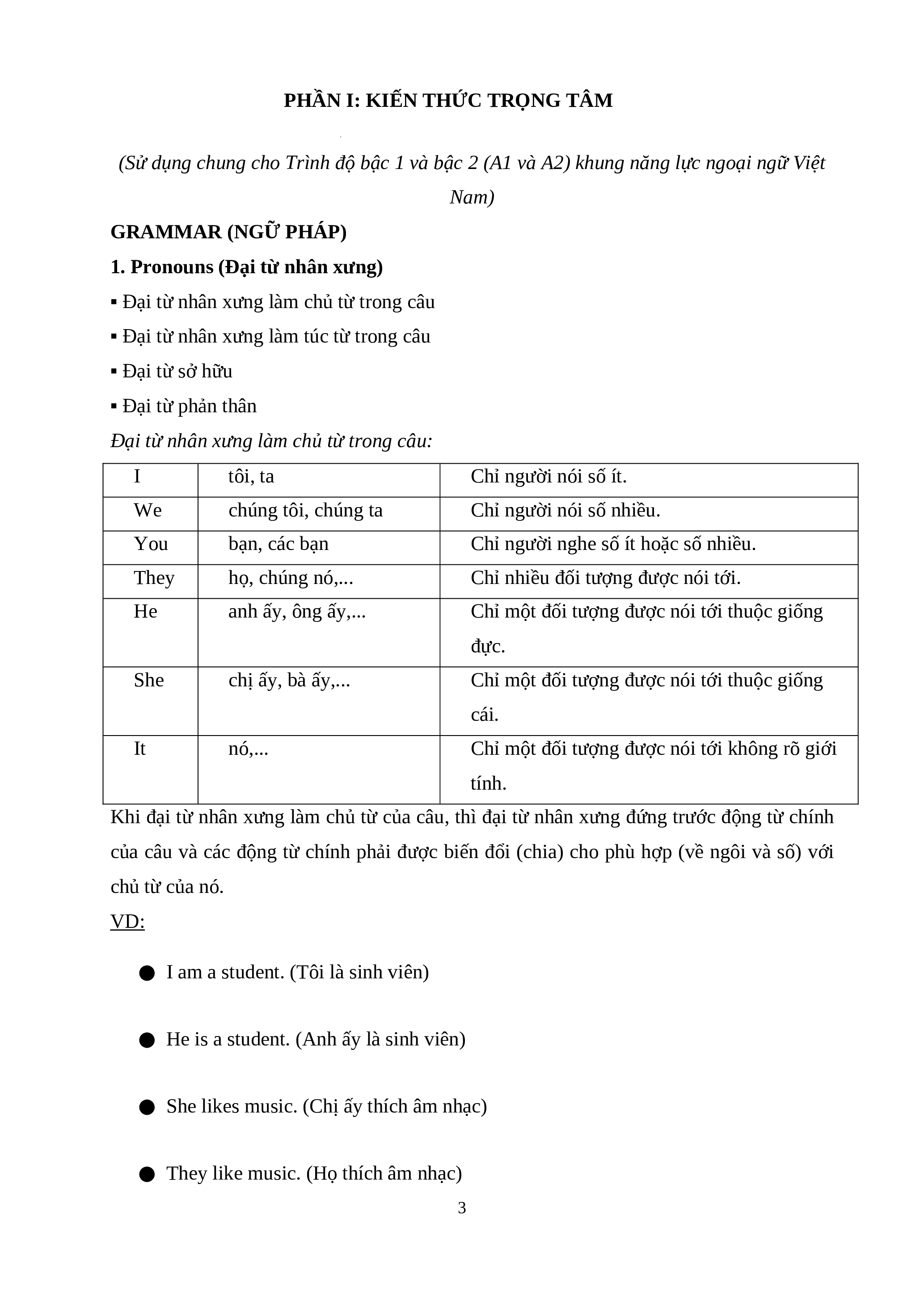 (Sử dụng chung cho Trình độ bậc 1 và bậc 2 (A1 và A2) khung năng lực ngoại ngữ Việt Nam) GRAMMAR (NGỮ PHÁP)