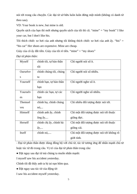 ▪ Đại từ nhân xưng làm túc từ trong câu ▪ Đại từ sở hữu ▪ Đại từ phản thân