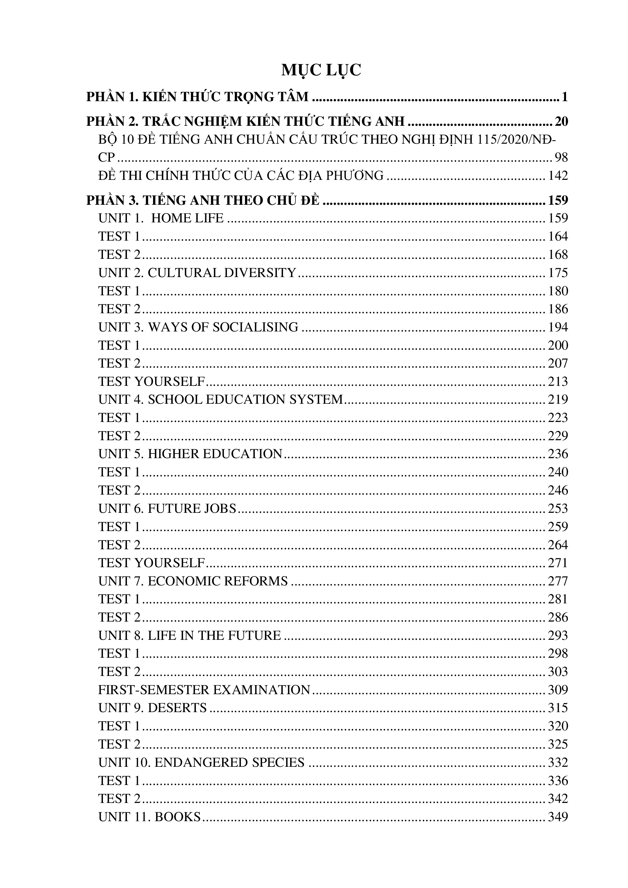 BỘ TÀI LIỆU ÔN THI TIẾNG ANH VIÊN CHỨC MỚI NHẤT MỤC LỤC