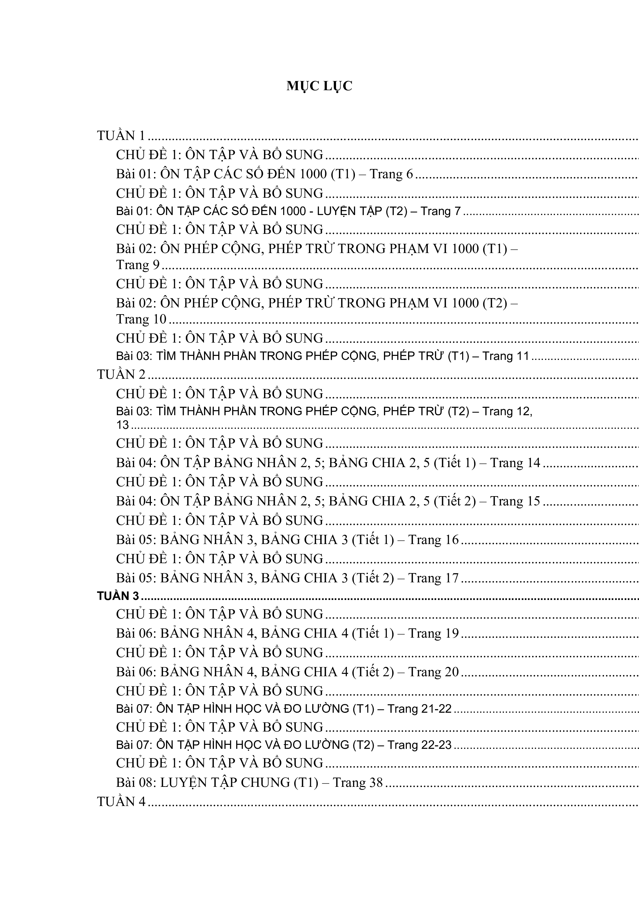 GIÁO ÁN MÔN TOÁN LỚP 3 - KNTT MỤC LỤC