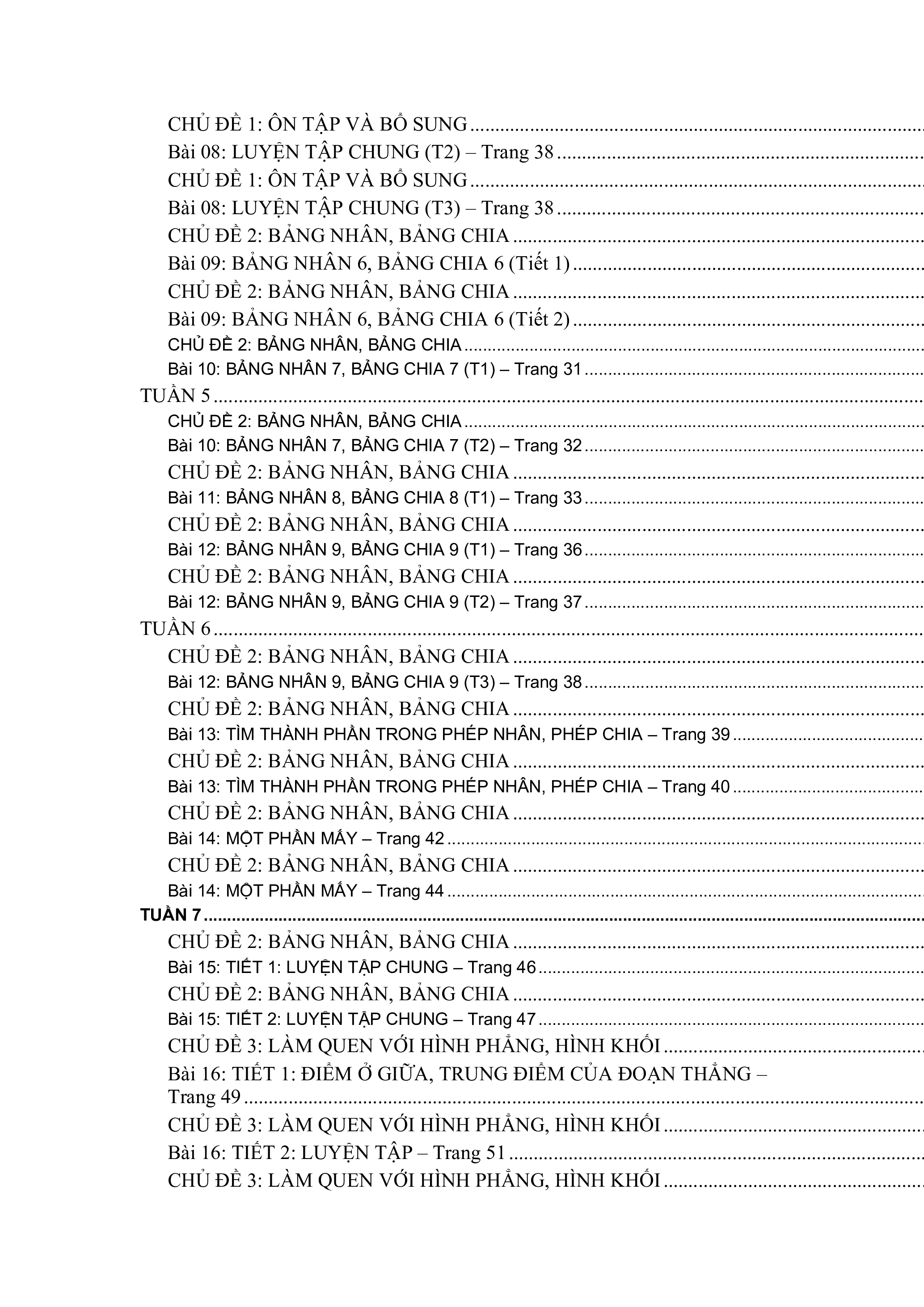 Bài 05: BẢNG NHÂN 3, BẢNG CHIA 3 (Tiết 1) – Trang 16. . . . . . . . . . . . . . . . . . . . . . . . . . . . . . . . . . . . . . .49
