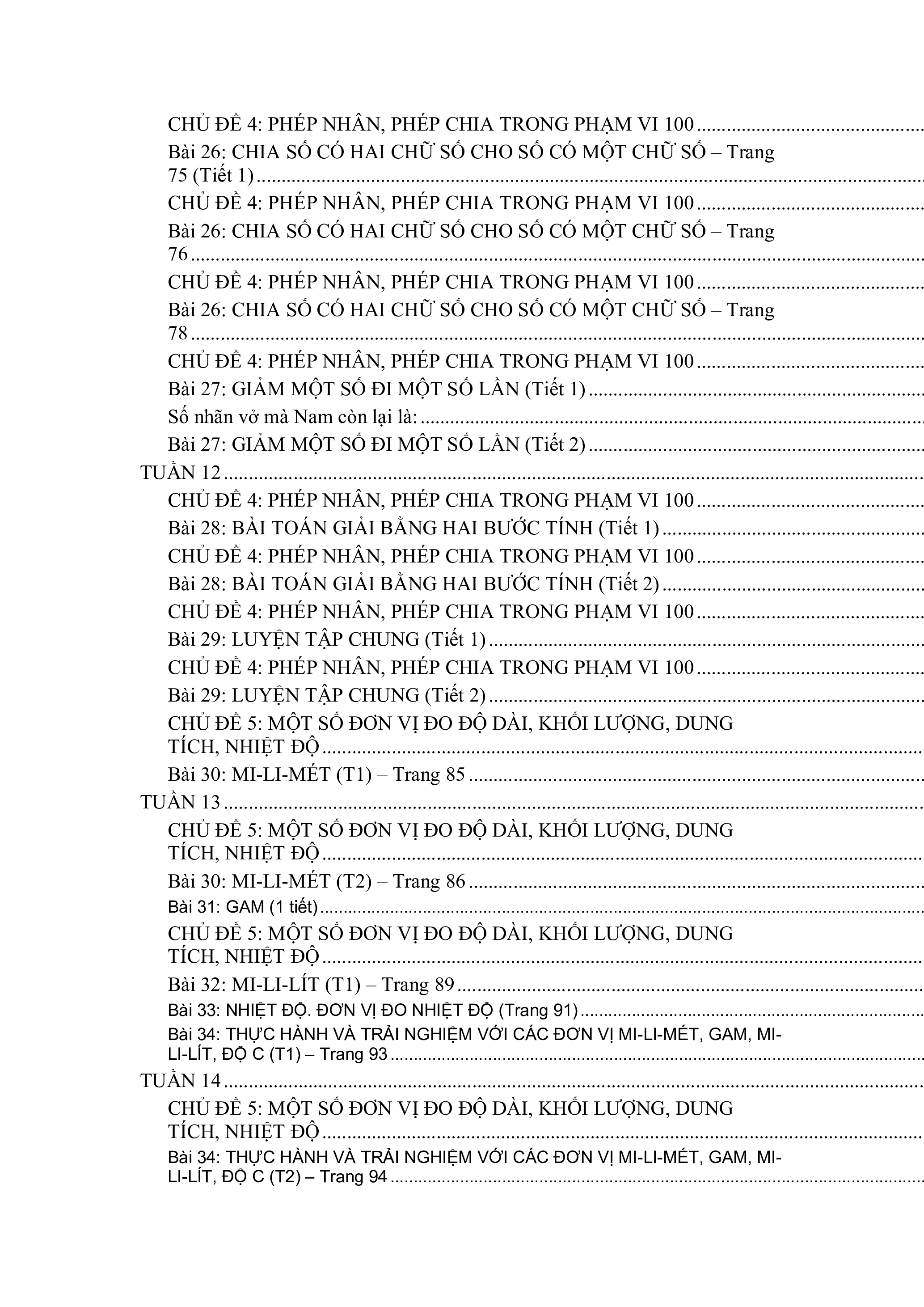 CHỦ ĐỀ 2: BẢNG NHÂN, BẢNG CHIA. . . . . . . . . . . . . . . . . . . . . . . . . . . . . . . . . . . . . . . . . . . . . . . . . . . . . . 92