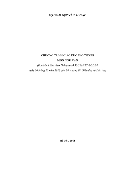 CHƯƠNG TRÌNH GIÁO DỤC PHỔ THÔNG MÔN NGỮ VĂN