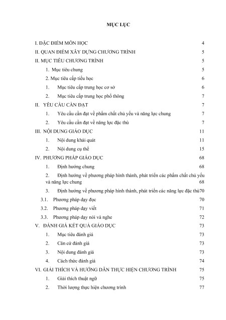 Yêu cầu cần đạt về năng lực đặc thù 7 III. NỘI DUNG GIÁO DỤC 11 1. Nội dung khái quát 11 2. Nội dung cụ thể 15 IV. PHƯƠNG PHÁP GIÁO DỤC 68 1. Định hướng chung 68 2.