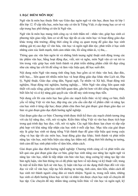 yếu về tiếng Việt và văn học, đáp ứng các yêu cầu cần đạt về phẩm chất và năng lực