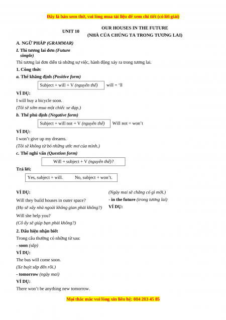 Phần I - Unit 10: OUR HOUSES IN THE FUTURE - Chương trình thí điểm