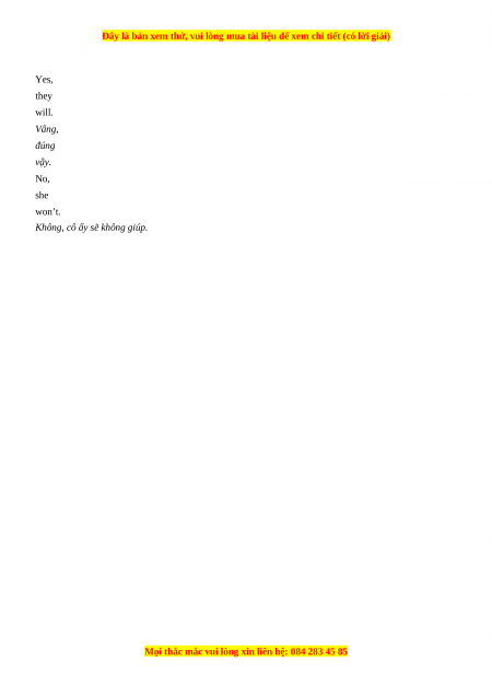 Yes, they will. Vâng, đúng vậy. No, she won’t.