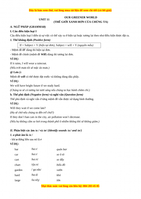 Phần I - Unit 11 :OUR GREENER WORLD - Chương trình thí điểm
