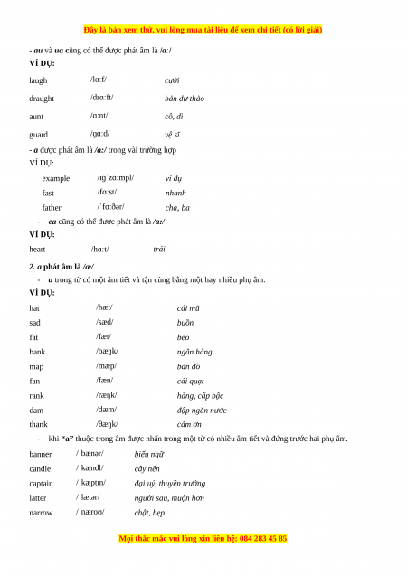- a được phát âm là /a:/ trong vài trường hợp VÍ DỤ: example /ɪɡˈzɑːmpl/ ví dụ fast /fɑːst/ nhanh father /ˈfɑːðər/ cha, ba