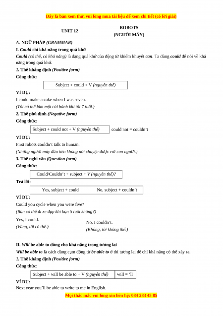 Phần I - Unit 12: ROBOTS - Chương trình thí điểm