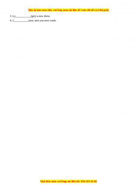 3. Ly (get) a new dress. 4. I (not, see) you next week.