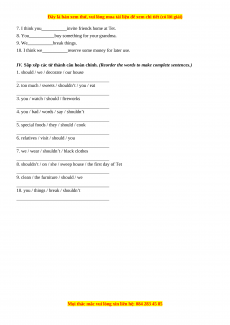 8. shouldn’t / on / she / sweep house / the first day of Tet
