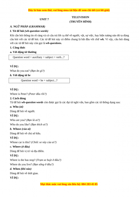 Phần I - Unit 7:TELEVISION - Chương trình thí điểm