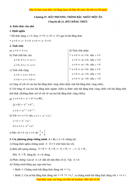 Chuyên đề 21. BẤT ĐẲNG THỨC