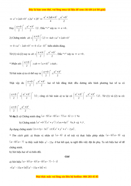 Ví dụ 1: Cho a và b là hai số bất kỳ chứng minh rằng