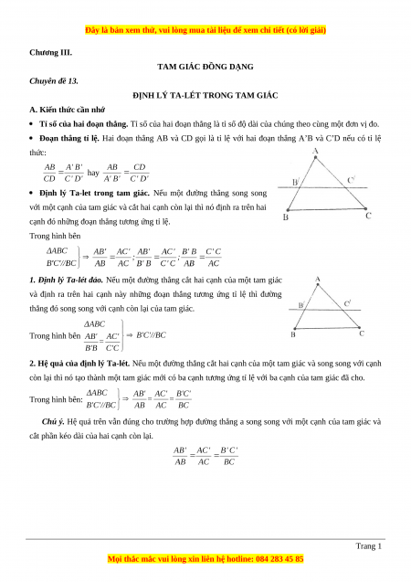 ĐỊNH LÝ TA-LÉT TRONG TAM GIÁC