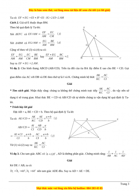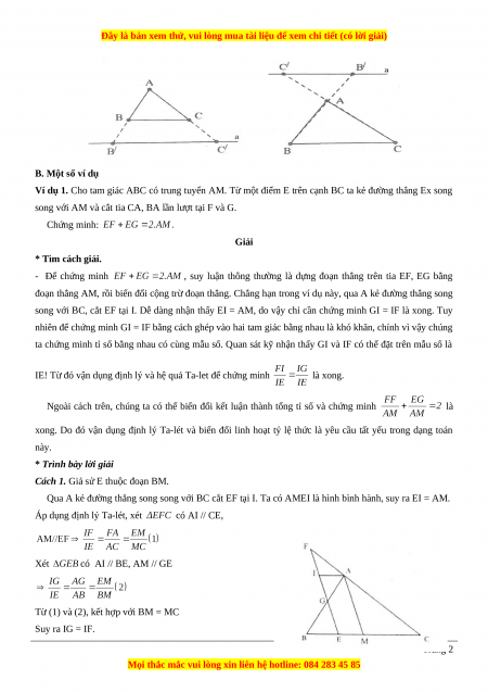 xong. Do đó vận dụng định lý Ta-lét và biến đổi linh hoạt tỷ lệ thức là yêu cầu tất yếu trong dạng toán