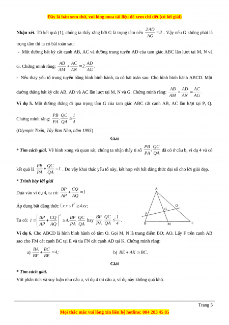 Ví dụ 5. Một đường thẳng đi qua trọng tâm G của tam giác ABC cắt cạnh AB, AC lần lượt tại P, Q.