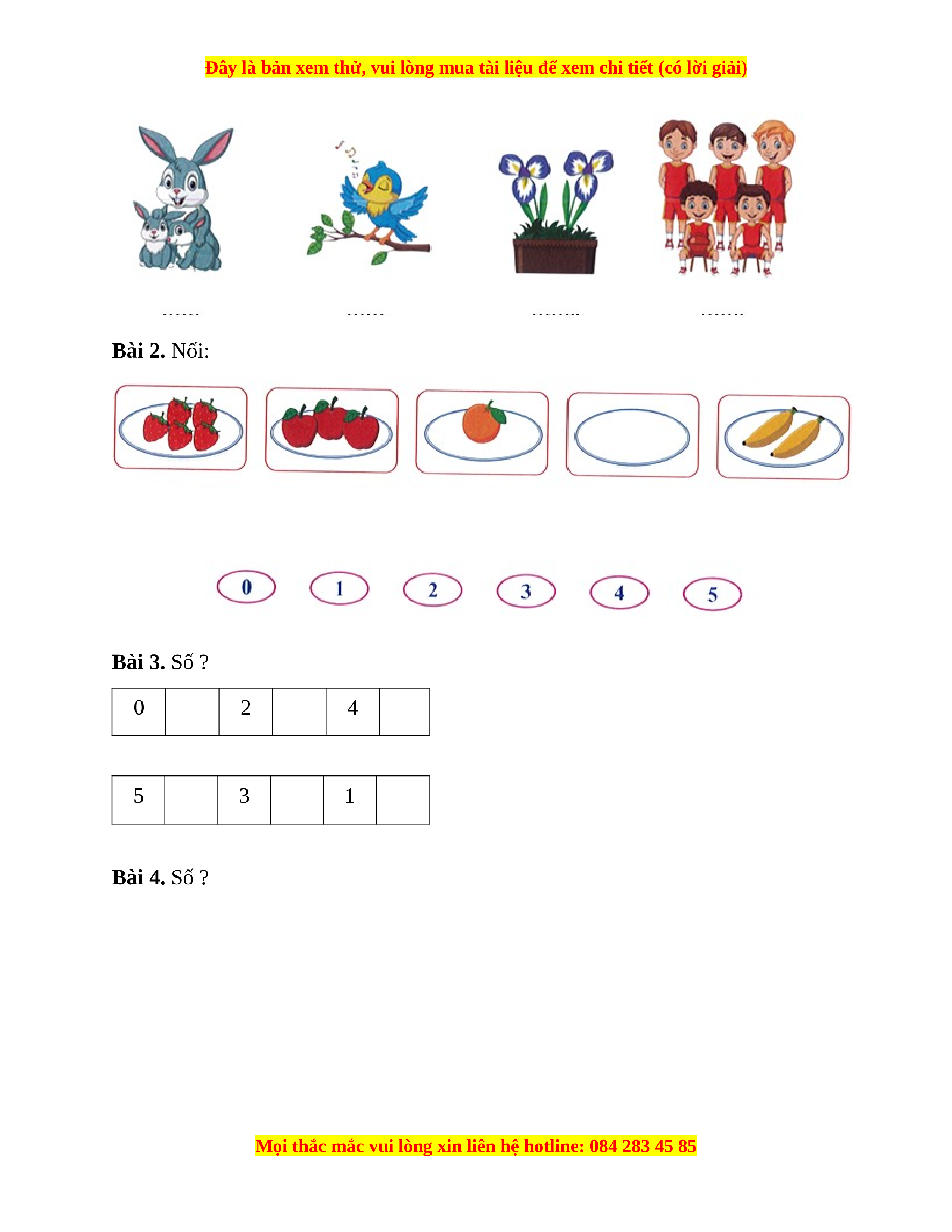Bài 2. Nối: Bài 3. Số ? 0 2 4 5 3 1 Bài 4. Số ?