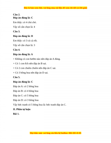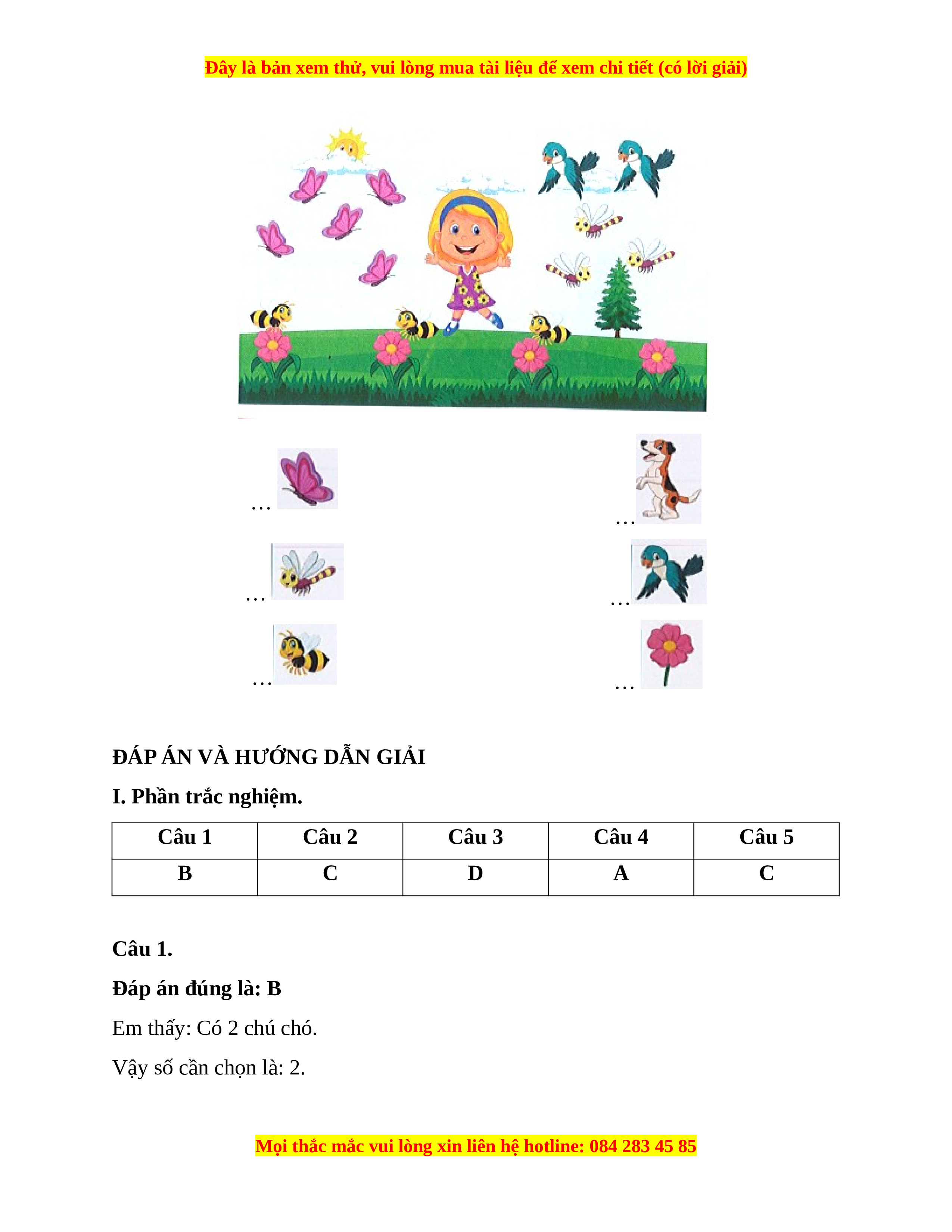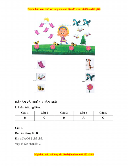 I. Phần trắc nghiệm. Câu 1 Câu 2 Câu 3 Câu 4 Câu 5 B C D A C Câu 1. Đáp án đúng là: B Em thấy: Có 2 chú chó.
