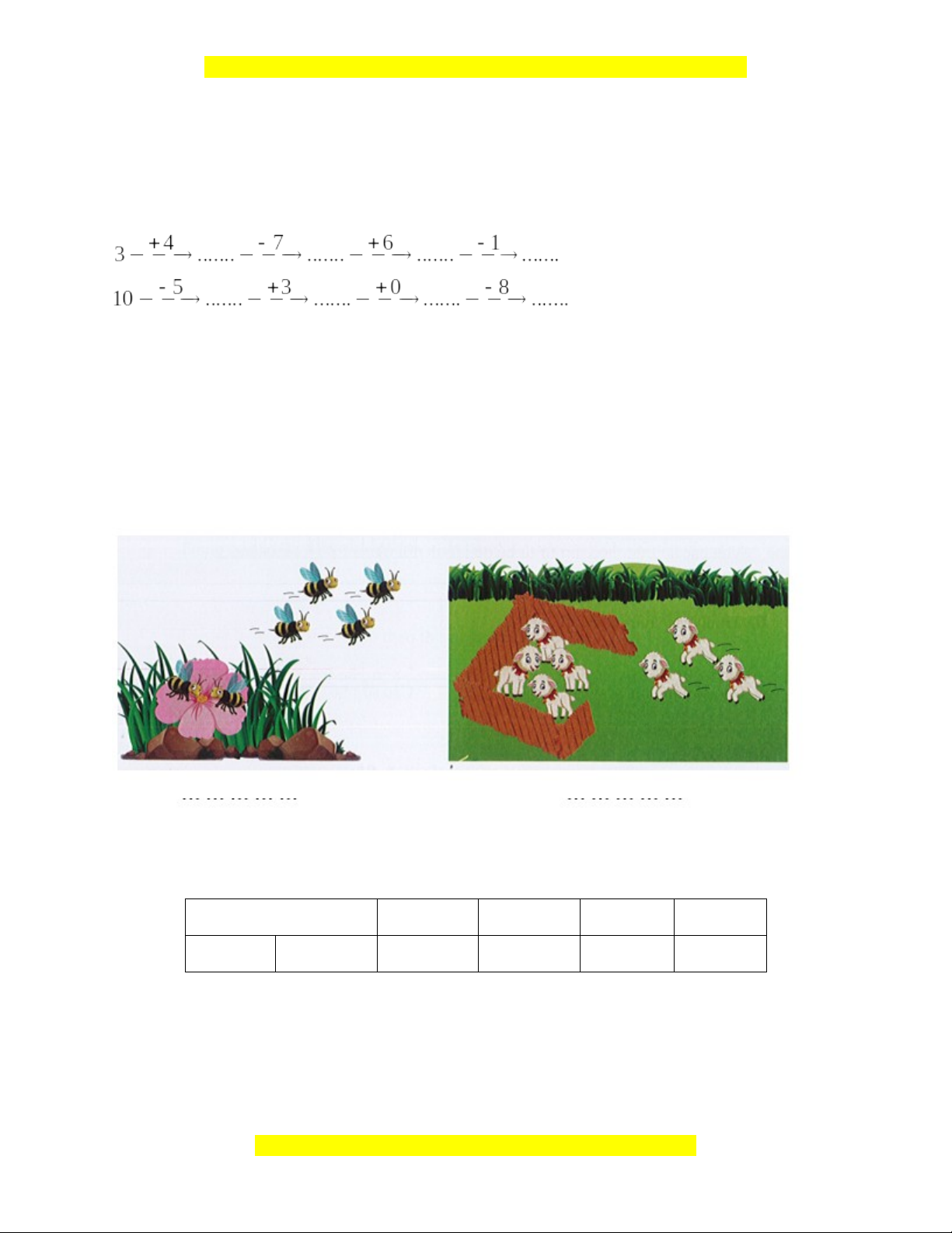 d. Các số nhỏ hơn 6 là: … … Bài 3. Số ? 7 + 2 = … 5 + 3 = … 2 + 6 = … 7 – 1 = … 10 – 6 = … 6 – 6 = …