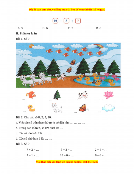 A. 5 B. 6 C. 7 D. 8 II. Phần tự luận Bài 1. Số ? … … … … … … … …