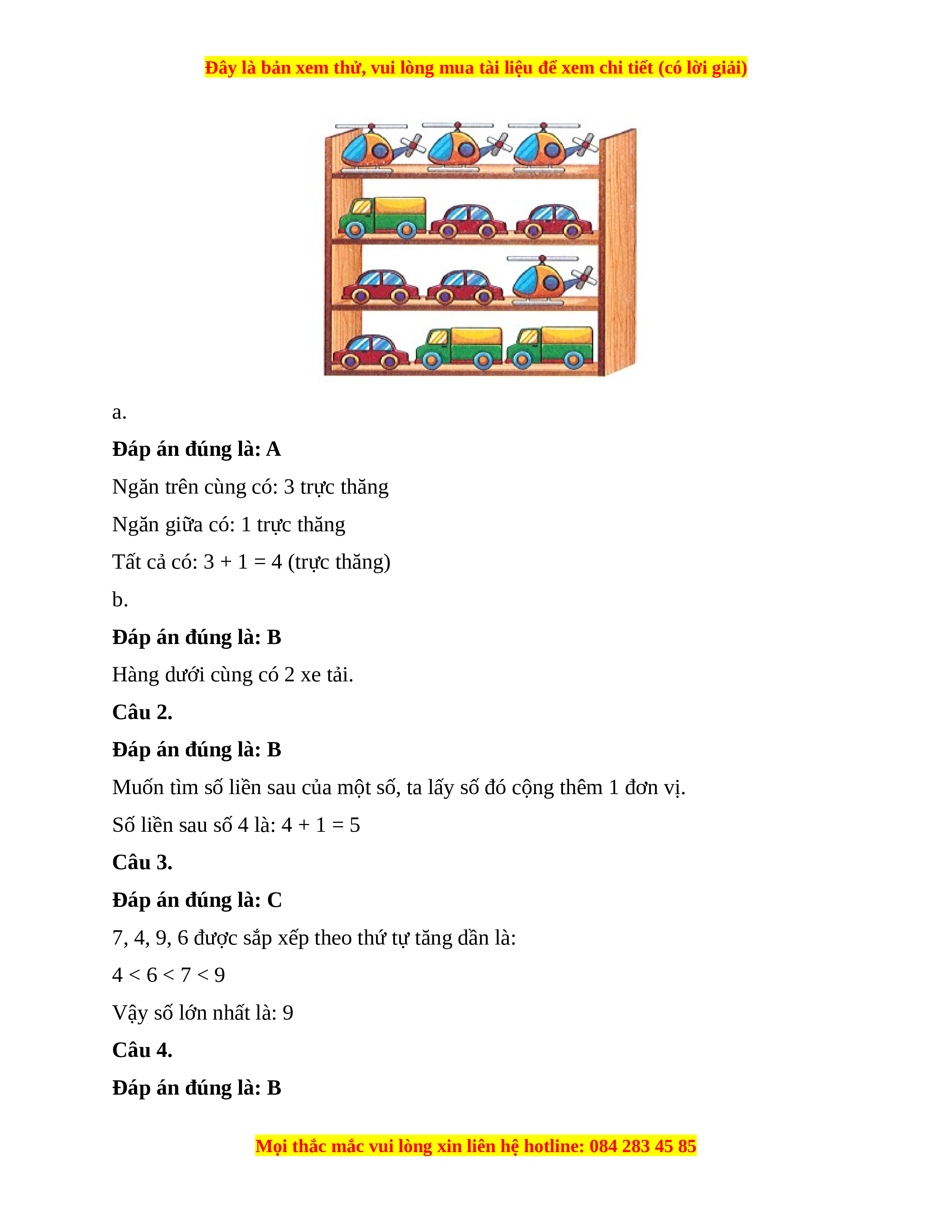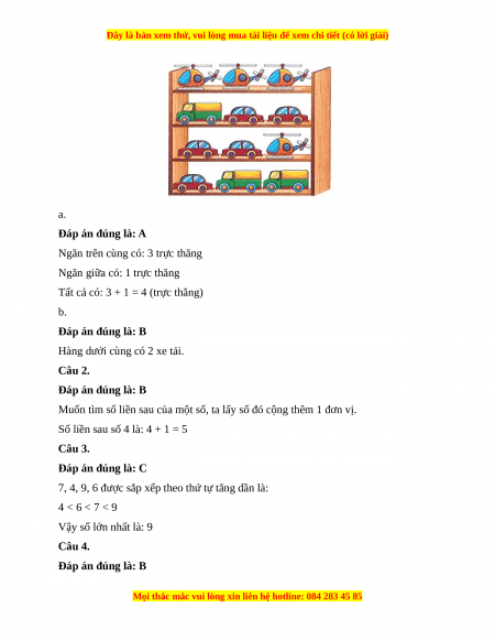 Hàng dưới cùng có 2 xe tải. Câu 2. Đáp án đúng là: B