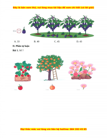 A. 33 B. 40 C. 45 D. 43 II. Phần tự luận Bài 1. Số ?