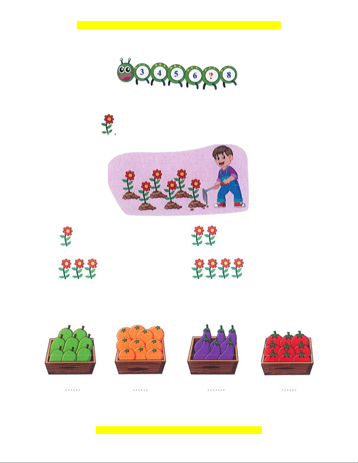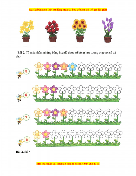 Bài 2. Tô màu thêm những bông hoa để được số bông hoa tương ứng với số đã cho: Bài 3. Số ?