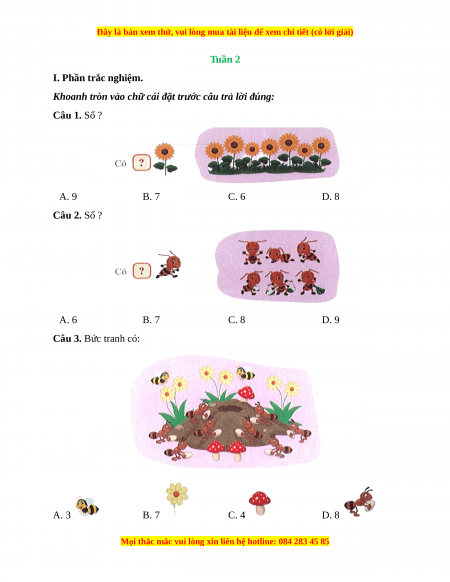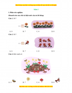 Khoanh tròn vào chữ cái đặt trước câu trả lời đúng: Câu 1. Số ? A. 9 B. 7 C. 6 D. 8 Câu 2. Số ? A. 6 B. 7 C. 8 D. 9