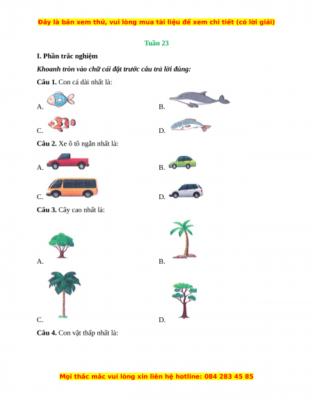Câu 1. Con cá dài nhất là: A. B. C. D.