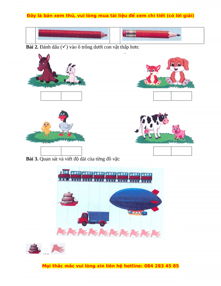 Bài 1. Đánh dấu () vào ô trống trước chiếc bút dài hơn: