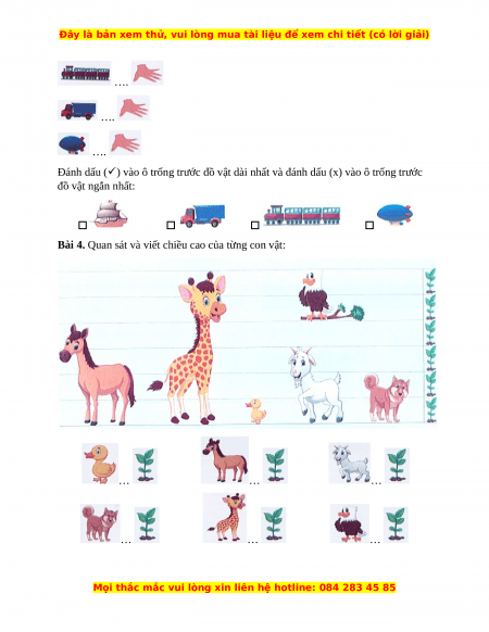 Bài 4. Quan sát và viết chiều cao của từng con vật: … … … … … …