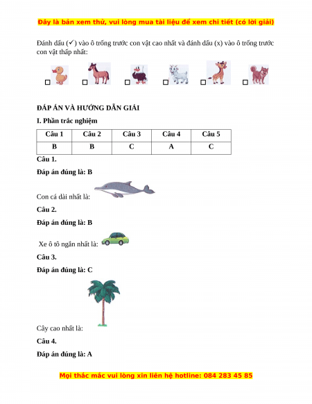 Đánh dấu () vào ô trống trước con vật cao nhất và đánh dấu (x) vào ô trống trước