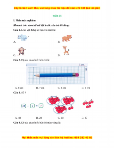 Phiếu bài tập cuối tuần Toán lớp 1 Tuần 25 Kết nối tri thức