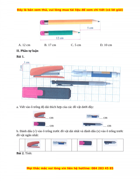 A. 12 cm B. 17 cm C. 5 cm D. 10 cm II. Phần tự luận Bài 1.