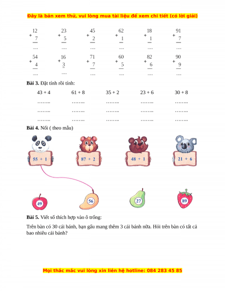 Bài 3. Đặt tính rồi tính: 43 + 4 61 + 8 35 + 2 23 + 6 30 + 8 …….. …….. …….. …….. …….. …….. …….. …….. …….. …….. …….. …….. …….. …….. ……..
