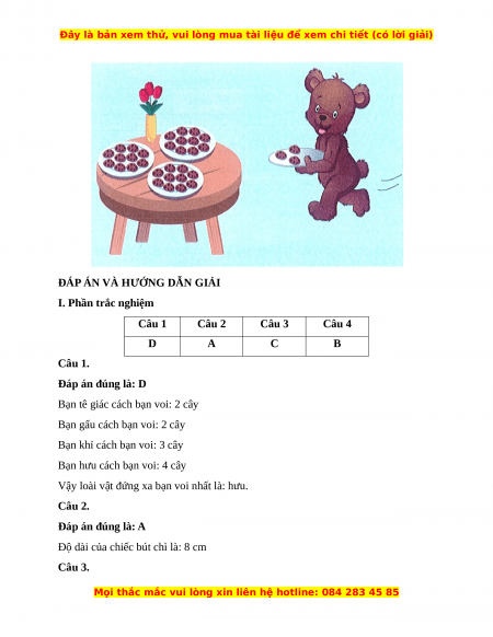 Vậy loài vật đứng xa bạn voi nhất là: hưu. Câu 2. Đáp án đúng là: A