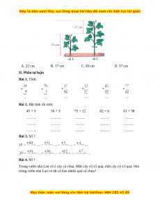 A. 22 cm B. 17 cm C. 39 cm D. 37 cm II. Phần tự luận Bài 1. Tính:
