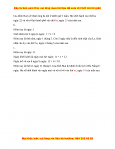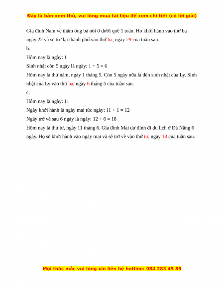 a. Gia đình Nam về thăm ông bà nội ở dưới quê 1 tuần. Họ khởi hành vào thứ ba